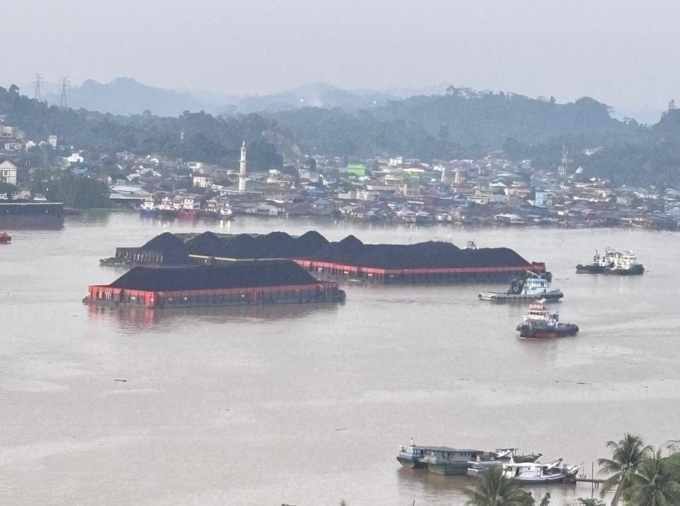 Tongkang batu bara yang melintas di perairan Kaltim (Sirana.id)